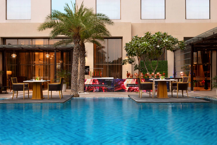 Experience the ideal fusion of comfort and convenience at Courtyard Agra, perfectly situated near Agra Cantt railway station and world-renowned attractions, including the Taj Mahal and Agra Fort. After a day of sightseeing, relax at the on-site spa, take a refreshing swim in the outdoor pool, or let your kids enjoy the Fun Zone and game room. Savor a delightful buffet breakfast and dinner, and enjoy 1+1 offers on select alcoholic beverages—all included in our exclusive packages. With plush bedding, marble bathrooms, and 24-hour free Wi-Fi, every stay promises comfort and connectivity.